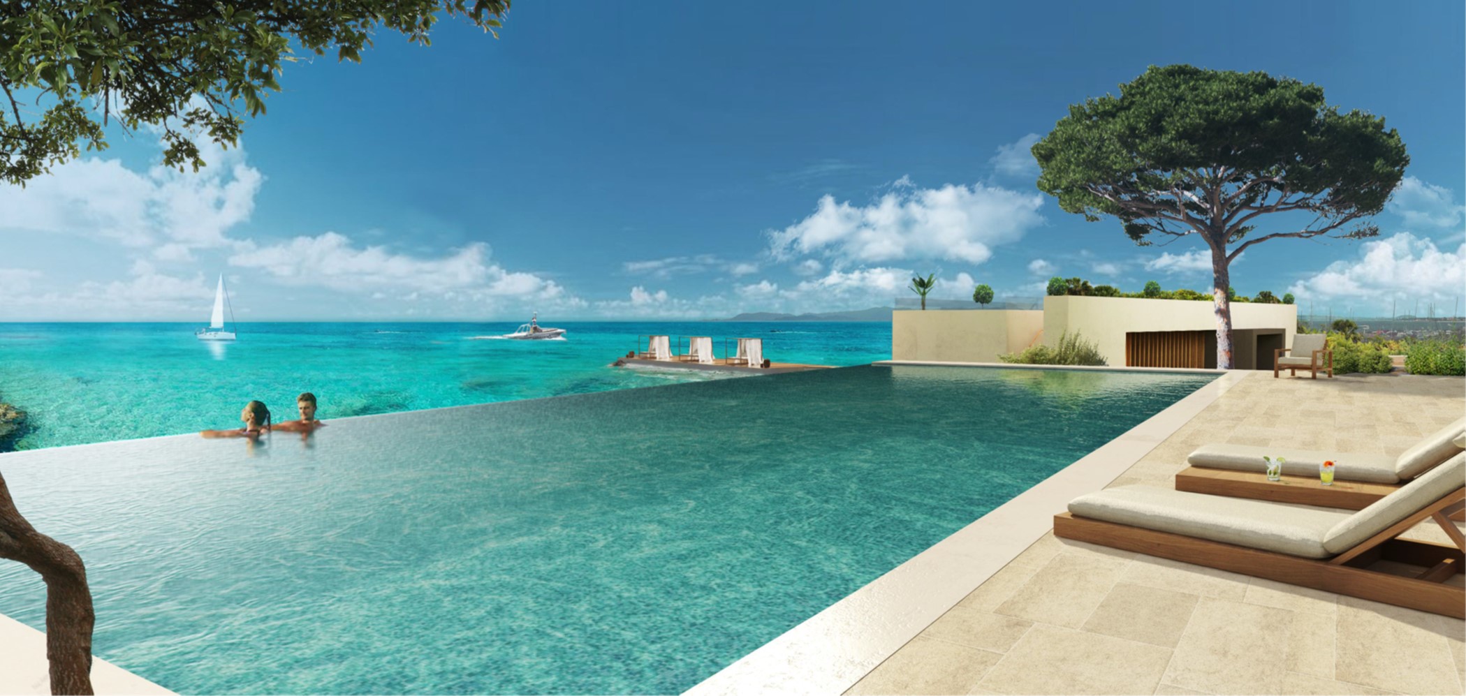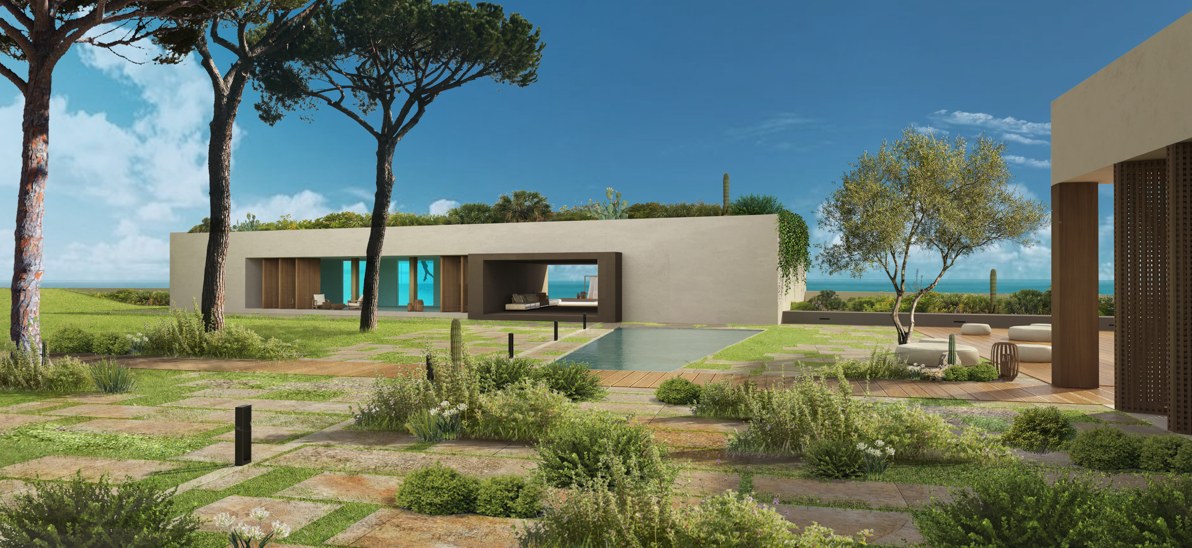 This 1.6-hectare property, with a 160-m seafront, has a built area of over 5,000 sqm of indoor and outdoor spaces and 400 sqm of seawater swimming pools. This new real estate development, conceived with a contemporary architecture and biophilic design, is currently in the final phase of construction and can be further customized according to the needs of the buyer. It consists of a welcome lounge, a main villa, a guest villa, a yacht club with terrace and swimming pool facing the sea, a seafront villa for relaxation and fun and large spaces for the staff, storage, services, as well as a parking area of 800 sqm.